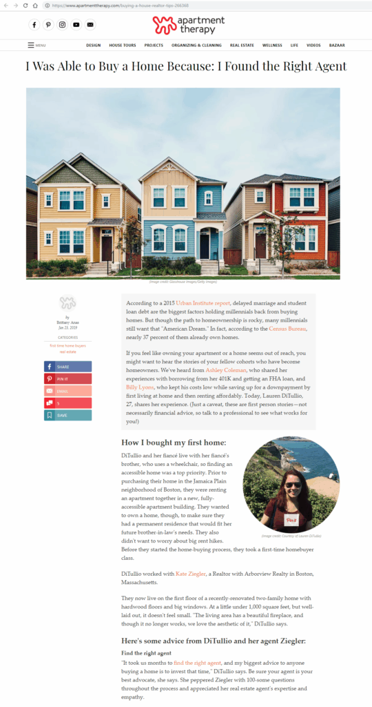 DiTullio worked with Kate Ziegler, a Realtor with Arborview Realty in Boston, Massachusetts.
